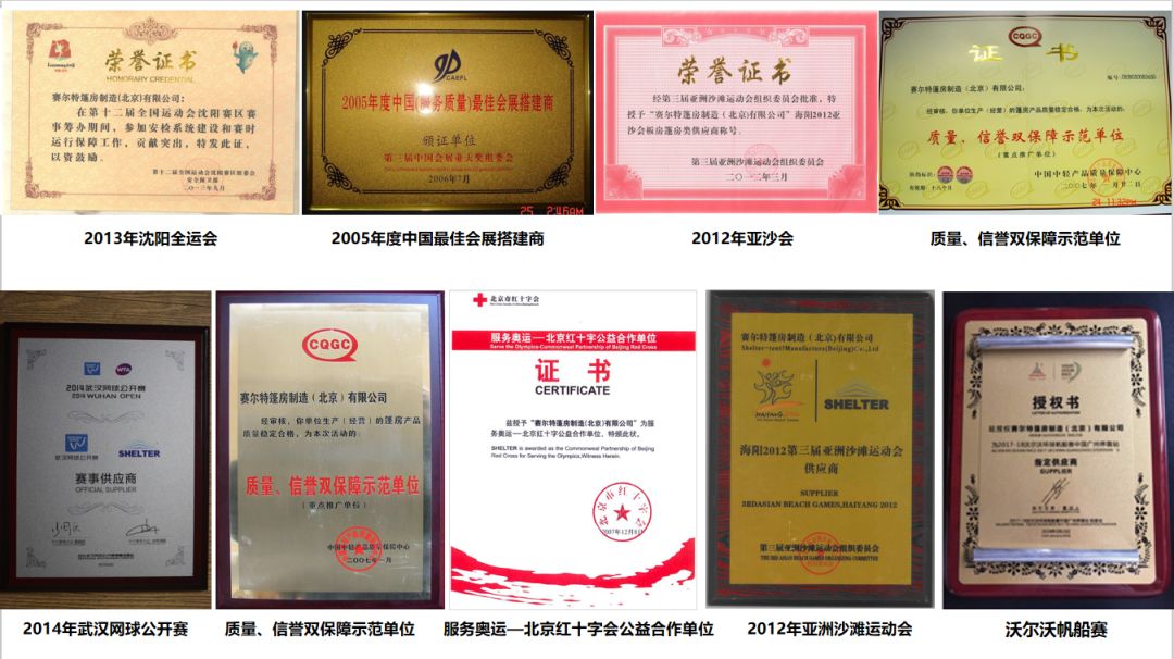 “赛尔特”品牌多年积累与沉淀,拥有顶尖的科技团队、德国先进的数控设备、高效强大的产能。一跃成为行业中的标杆,通过了CNAS中国实验室国家认可委员会认证,IFAI国际产业用纺织品协会认证,CE欧盟质量认证和ISO2000等,SHELTER TENT 商标已被评为“广东著名商标”。